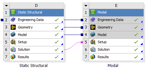 When you link the systems, the results you obtained are with considerations of deformations, stresses, and other parameters from the results of stress analysis as an input to the modal analysis.Â