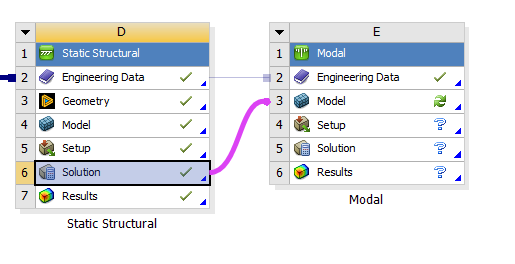 Yes, the connection is right (06:12 of How To Perform Prestressed Modal Analysis — Lesson 2 - ANSYS Innovation Courses), I would recommend you to go through the video once to gain insights on the pre-stressed modal analyses.Â