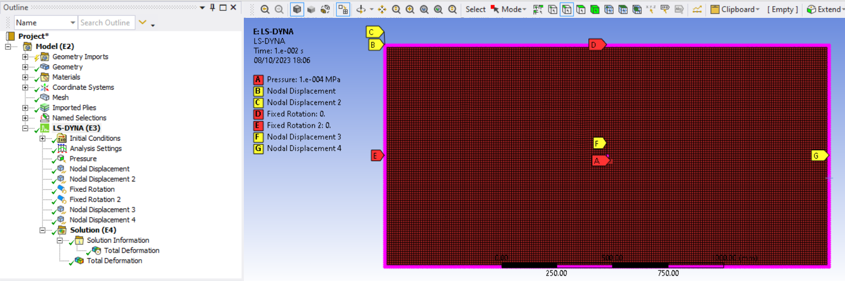 SubscriberGreetings,ÂI'm working on a project focused on analyzing the quasi-static compression behavior of Miura-ori structures made from paperboard. Initially, I planned to use LS-DYNA for this research. However, before diving into that, I decided to compare different solvers—static, explicit dynamic, and LS-DYNA—on a simple composite plate.ÂI followed a YouTube tutorial (&t=458s) and found that when I used the static structural solver, my results matched the video perfectly. However, when I tried the same with LS-DYNA and the explicit solver, my results and deformation behavior didn't align with the video. (The only difference in the models are in static structural there is nodal ratation boundary condition, whereas, since there is not such BC, I defined my rotation constraint as fixed rotation in explicit dynamics and LS-Dyna analysis)ÂI'm currently investigating the cause of this discrepancy. Could it be that the ACP module isn't transferring data correctly to the explicit dynamic and LS-DYNA solvers? Here's a quick summary of my modeling process and results:ÂÂAny insights would be greatly appreciated.ÂWarm regards,Ahmet K.