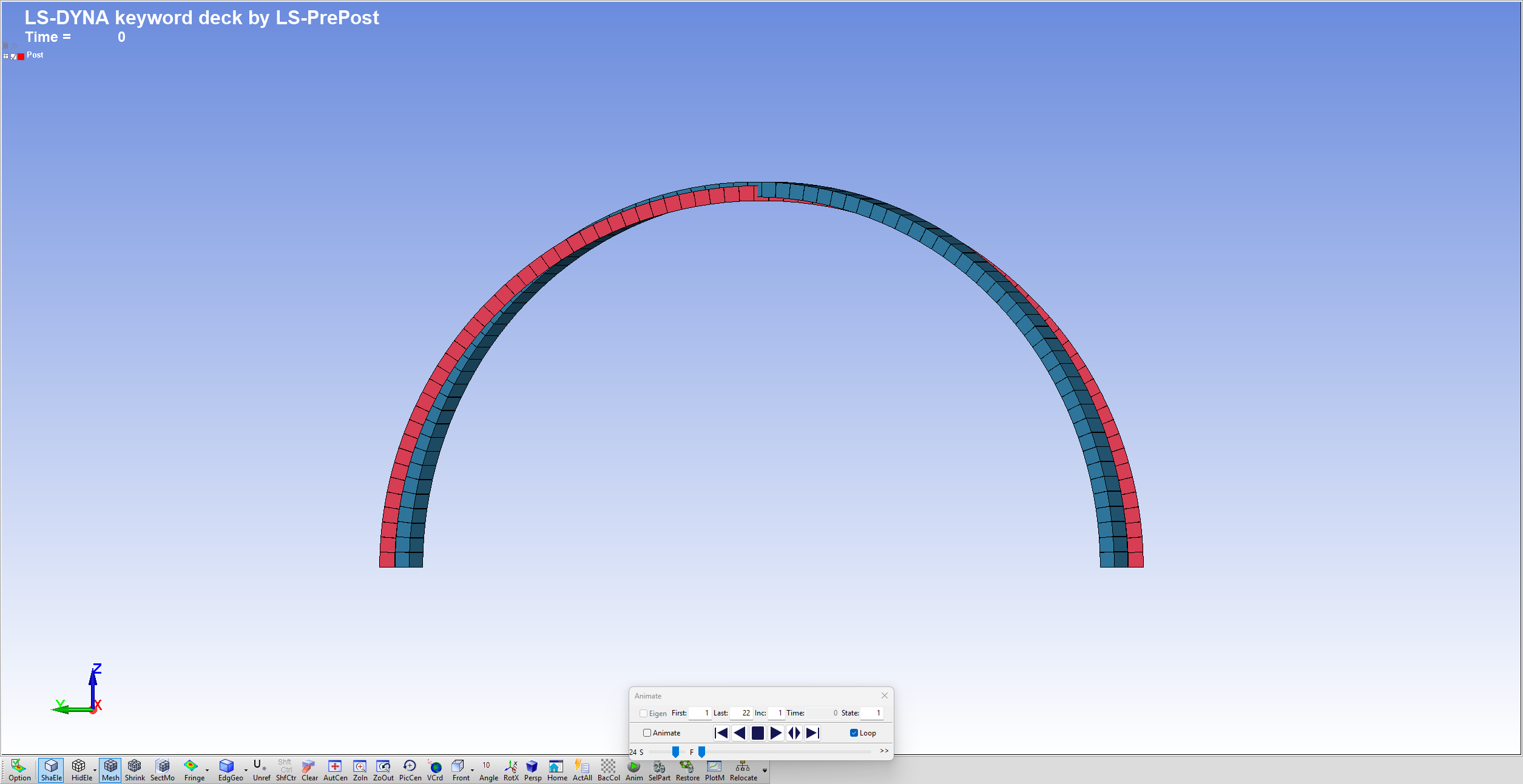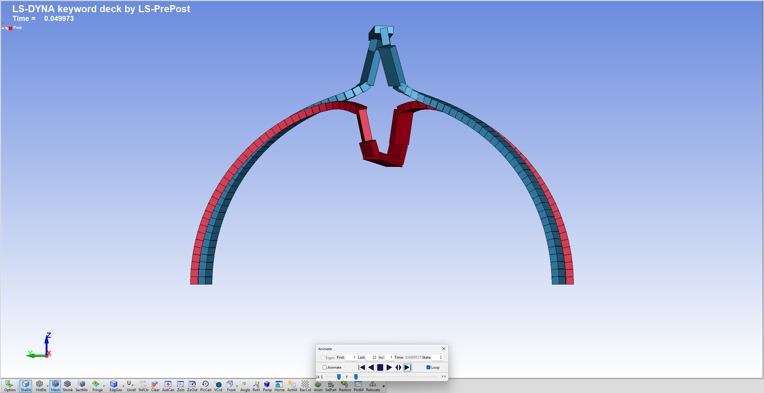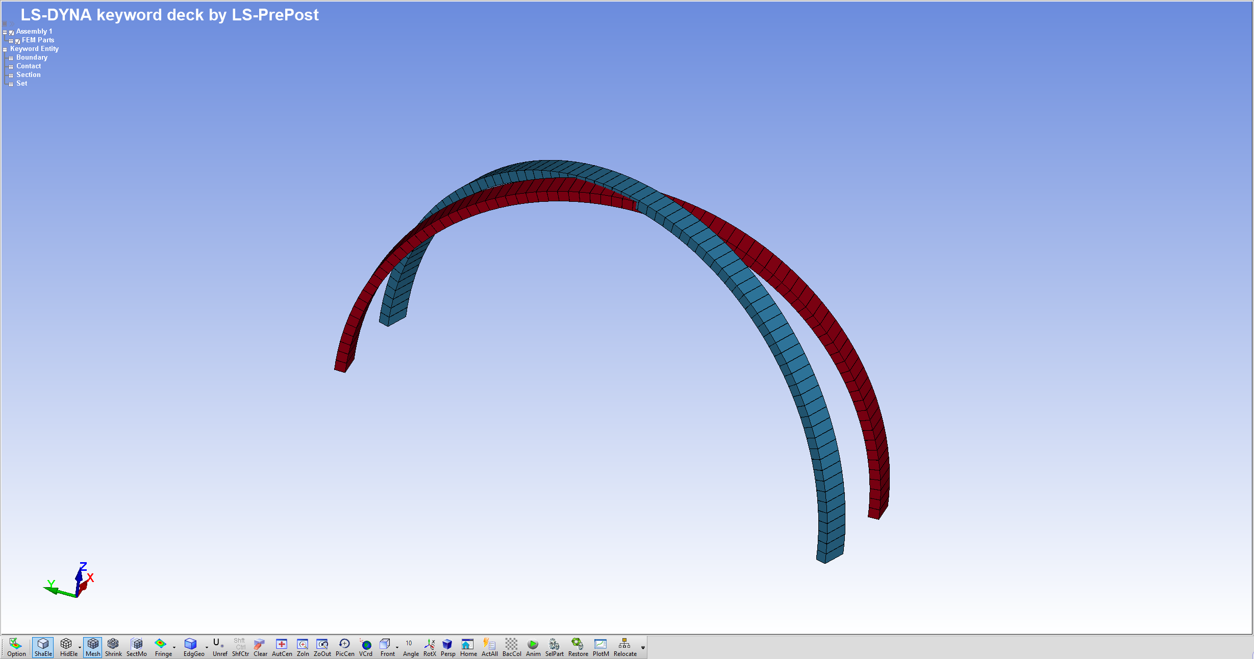 SubscriberHi Peter, I created a dome composed of many beams as shown in the figure 1 and 2, and made a cylinder imapct it. I applied *CONTACT_AUTOMATIC_BEAMS_TO_SURFACE_ID between the cylinder and each beam. As for beams, there is a little difference in height between 2 beams. I didn't add any contacts. I added *CONSTRAINED_GENERALIZED_WELD_SPOT or *CONSTRAINED_SPOTWELD between the nodes of 2 beams closest to the intersection. After I ran the simulation, the cylinder went through the dome rather than impacting it, as shown in figure 3. The beams appeared to have a little oscillation. It seems that there is still some interaction force between the beam and the cylinder. But the cylinder just directly went through the beams. Do you know how to fix it?