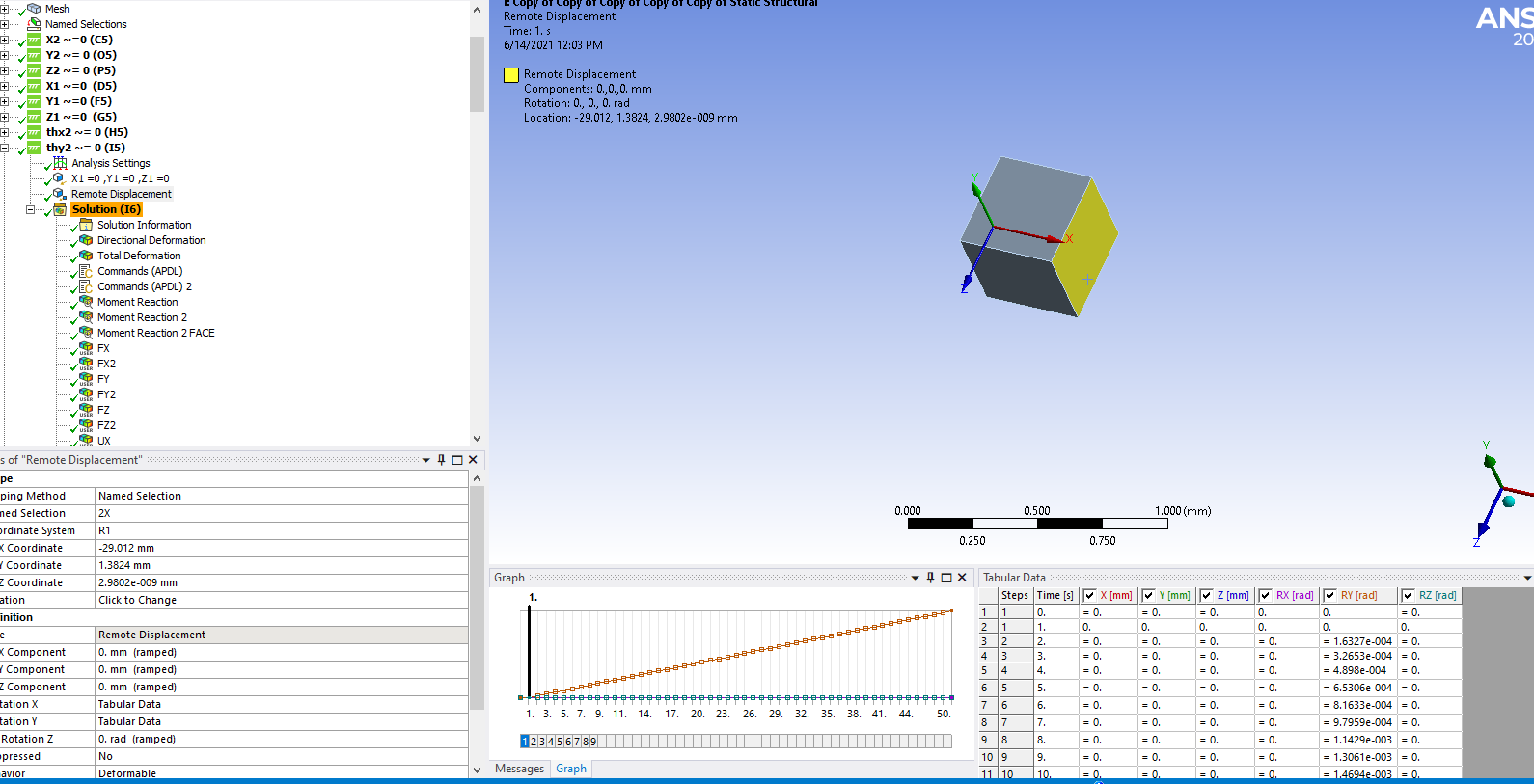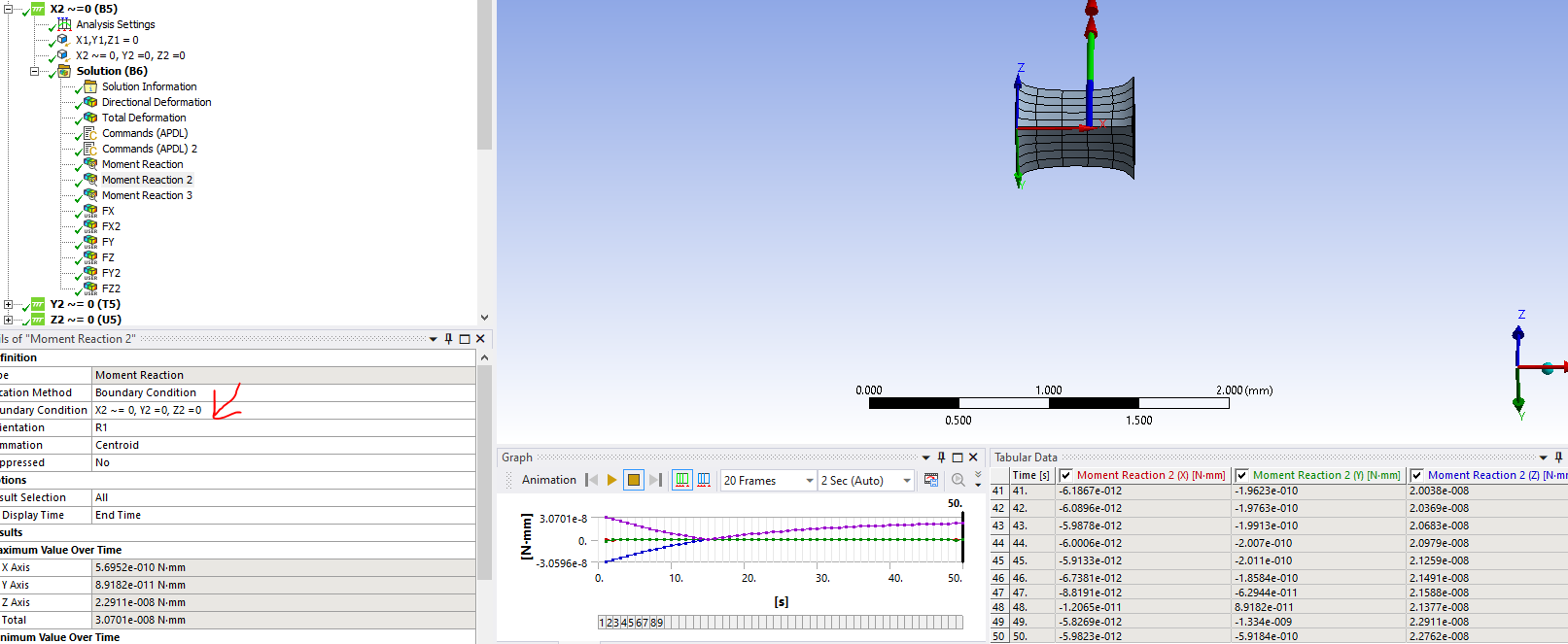 So I have a cube, where I have applied an angular displacement (using remote displacement). When I wanted to measure the moment reaction on that face, I have two location methods: Boundary Condition and Geometry Selection. Each one of these methods, is giving very different results.