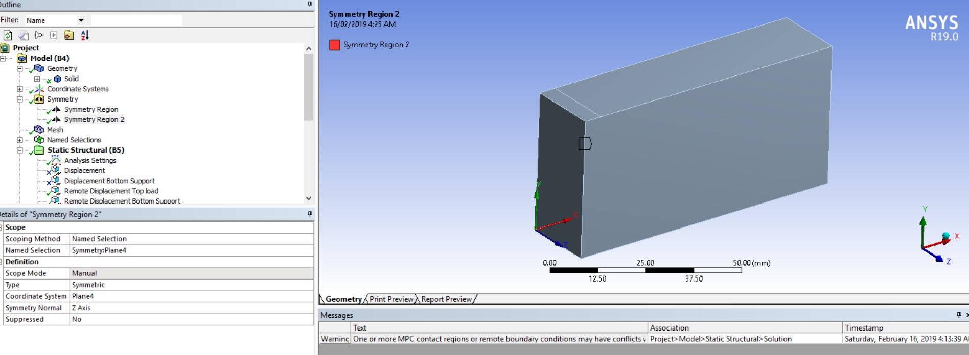 SubscriberWhile running a symmetry model, design based on the discussion here, in ANSYS mechanical I am getting the following two errors;