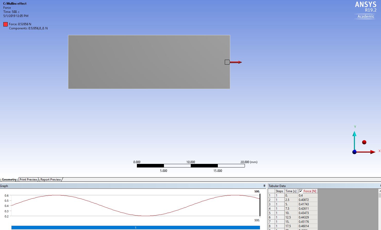 I am trying to evaluate the mullins damage variable over time in a soft tissue. I have created a new material using Mooney-Rivlin parameters and have introduced stress-softening using Mullins effect. My geometry is a simple rectangular shaped plate. One end of which is fixed and the other end is subjected to a time varying cyclic force. I have specified this force as a function of time in the loading conditions.