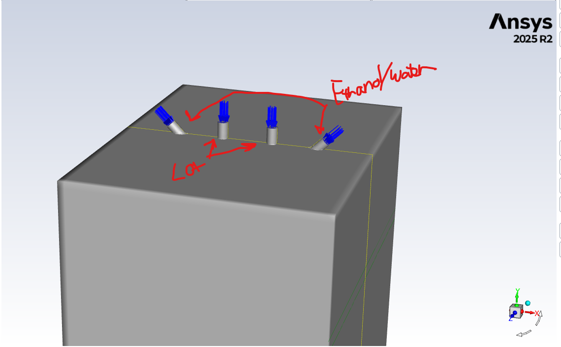 I tried defining a ethanol/water mixture template as a single VOF phase instead of 2 different phases, and a multicomponent DPM for the droplets, but kept getting an error about how the materials were inconsistent and how there was an error with the VOF-to-DPM mechanism