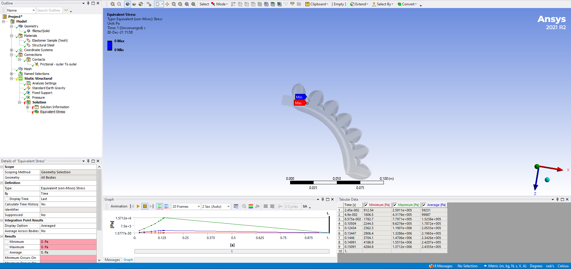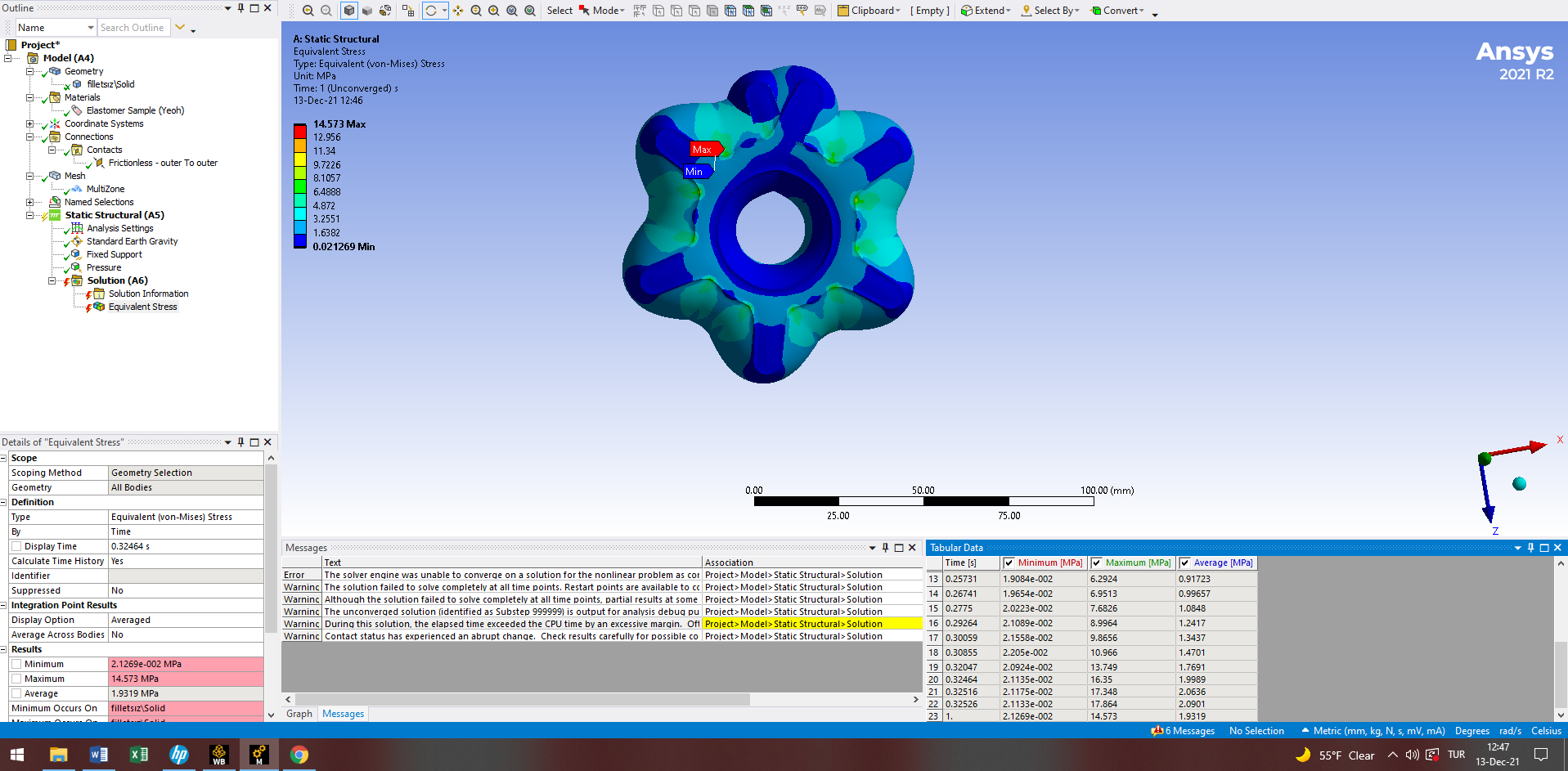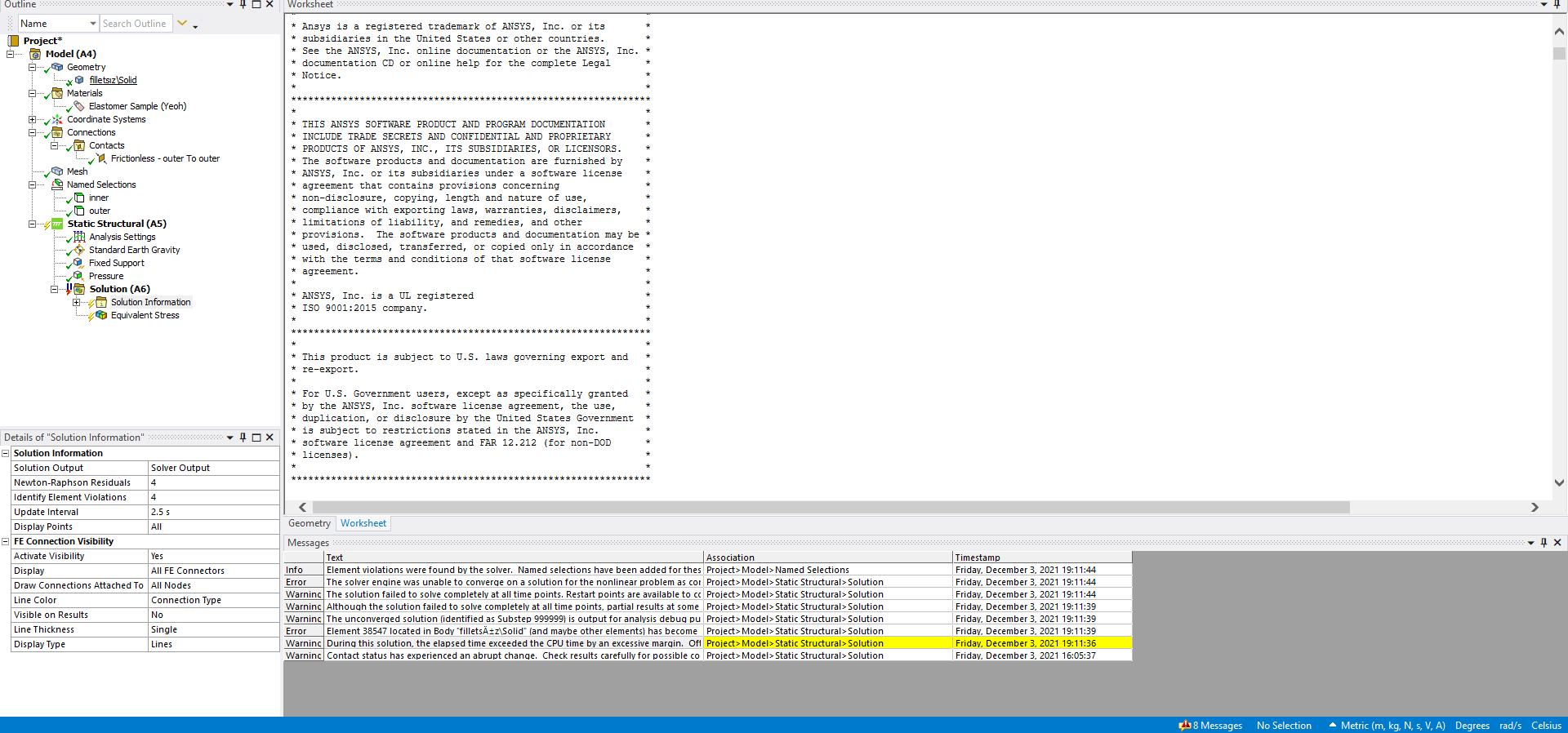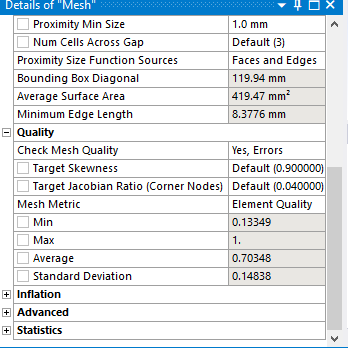 as you can see in pictures my simulation stop at specific time and it gives unconverged solution.I tried many times but i didn't get result of 1 sec. you can see my settings i gave 1 mm mesh size element quality is 0.84.