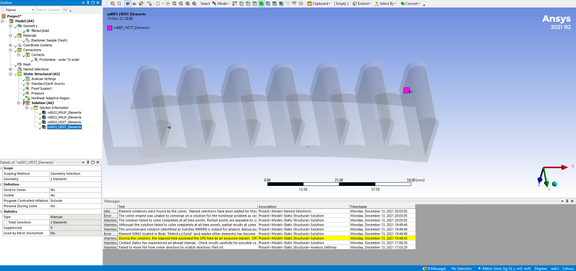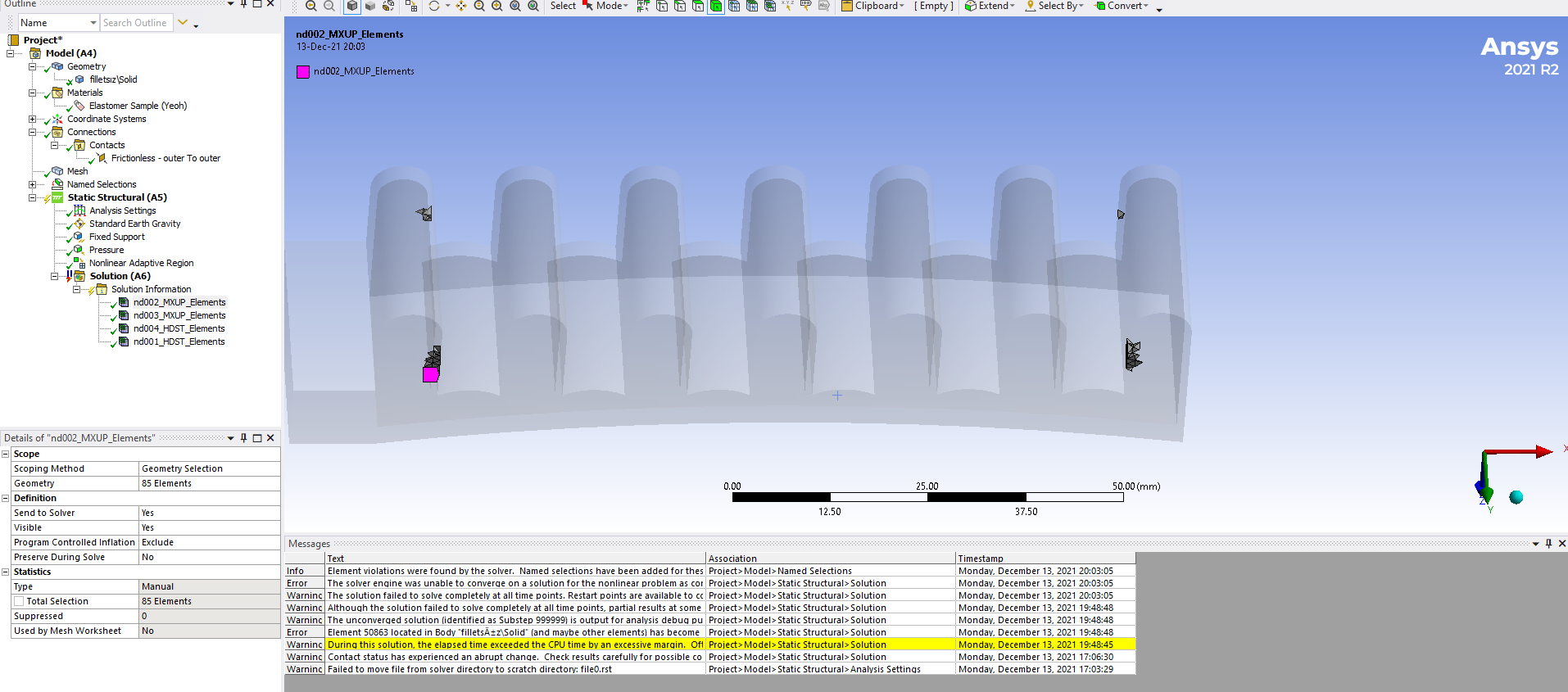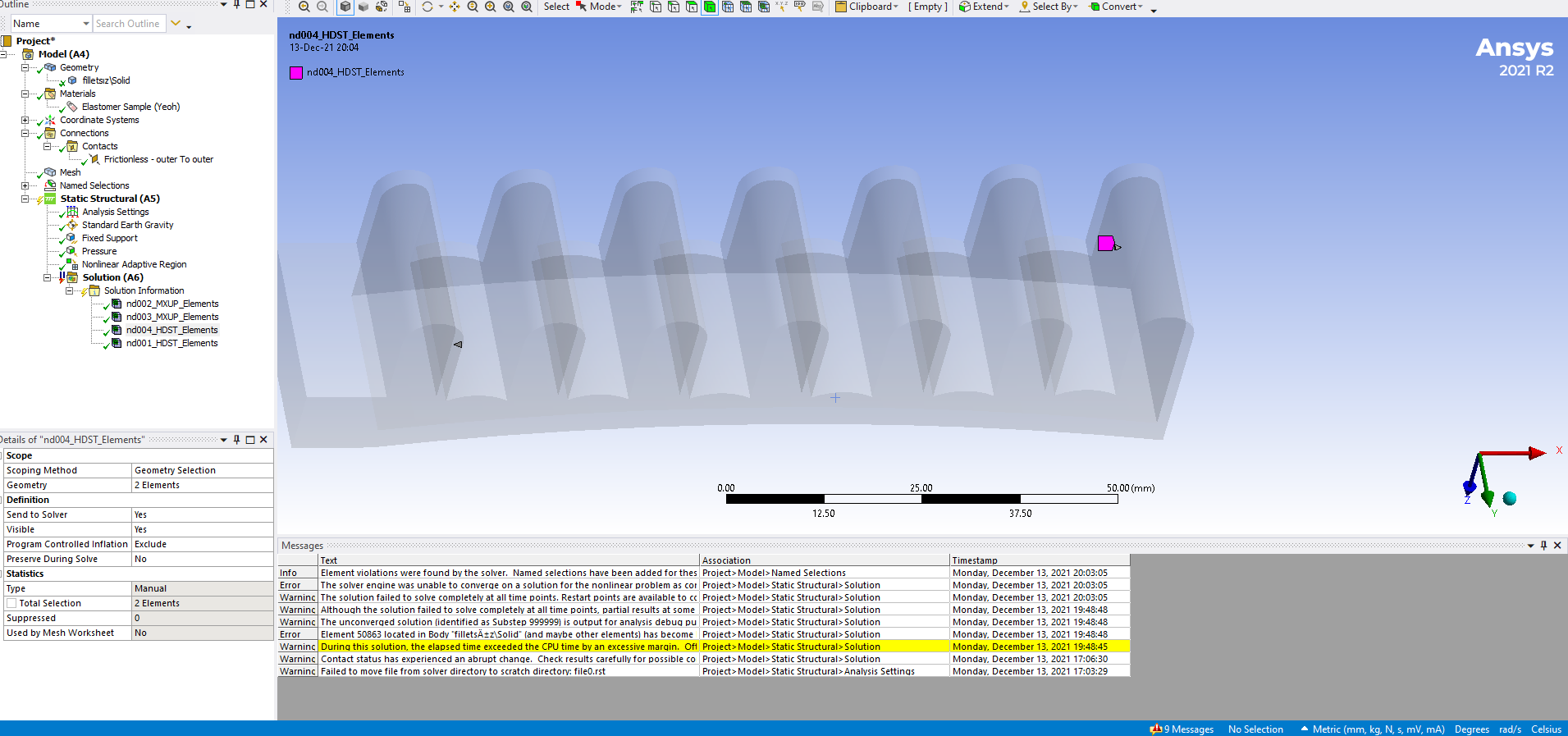 But in your post of today, there is not a Highly Distorted Element error that stopped the simulation, it just didn't converge.