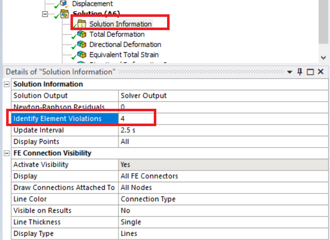 Hi In your Dec 3 post, there was a Highly Distorted Element error that stopped the simulation, so Identifying Element Violations was useful.