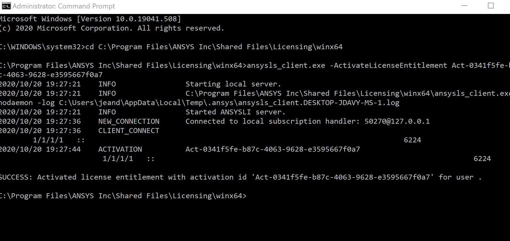 The image shows that the subscription license has been successfully activated. Click the Windows button and go to Ansys 2020 R2 version (or the version which you have installed) and click Discovery application. Let me know if you face any issue.
