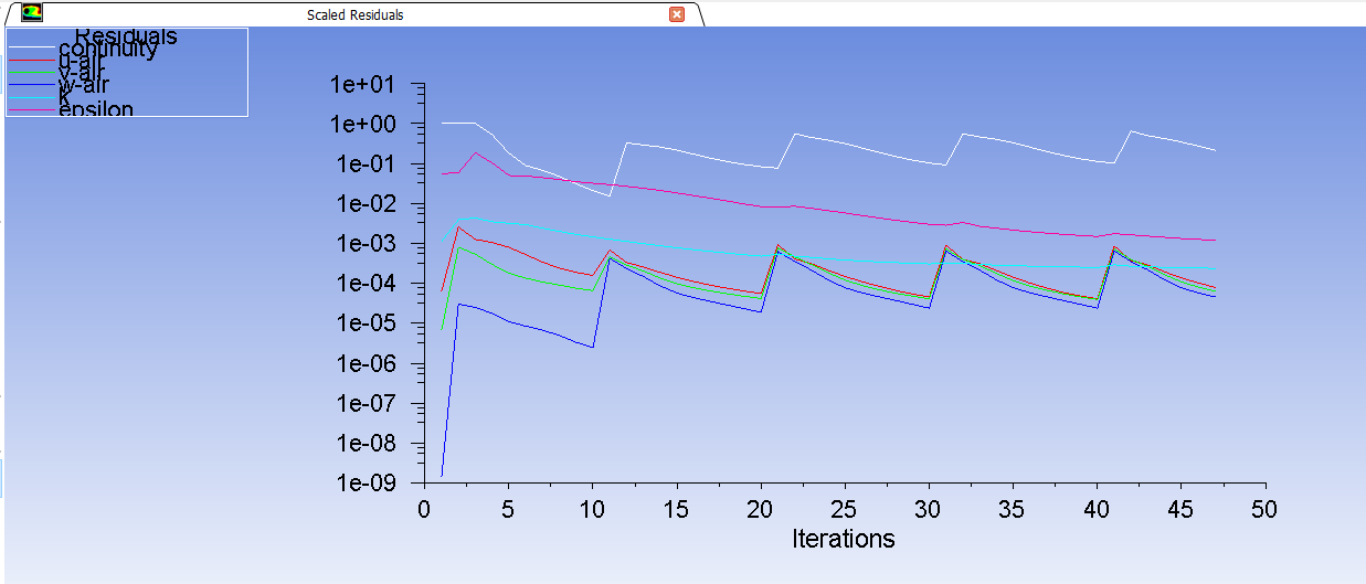 And also, when i update the DPM sources every say 40 or 50 iterations, the solution never converges, as can seen in the screenshot below. how can i overcome this? how can i solve the flow without particles until convergence then inject particles?