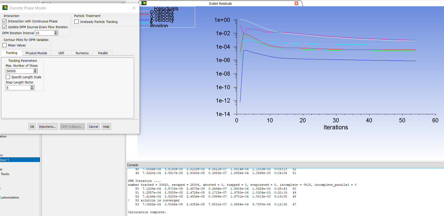 Could you just please clarify how to run the flow to completion then start tracking particles? i cannot turn off dpm model unless i delete the created injections