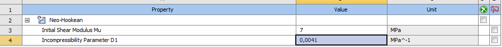I am working on the structural simulation of hyperelastic models and I have some questions. Concerning the model of Neo, I have that the parameter d is the incompressibility of the material. For compressible material I saw that we could put d=0 or in the energy equation: