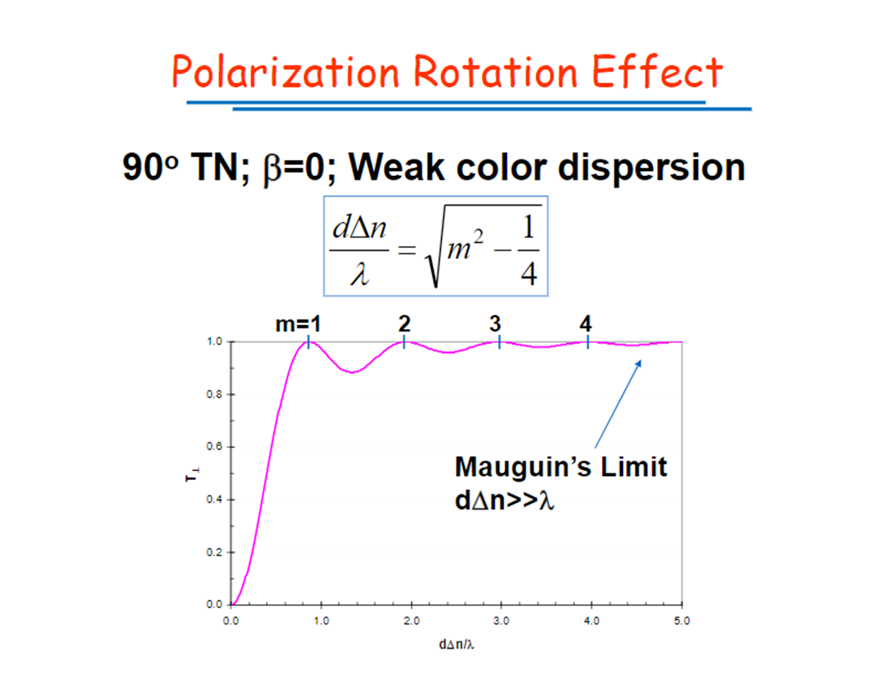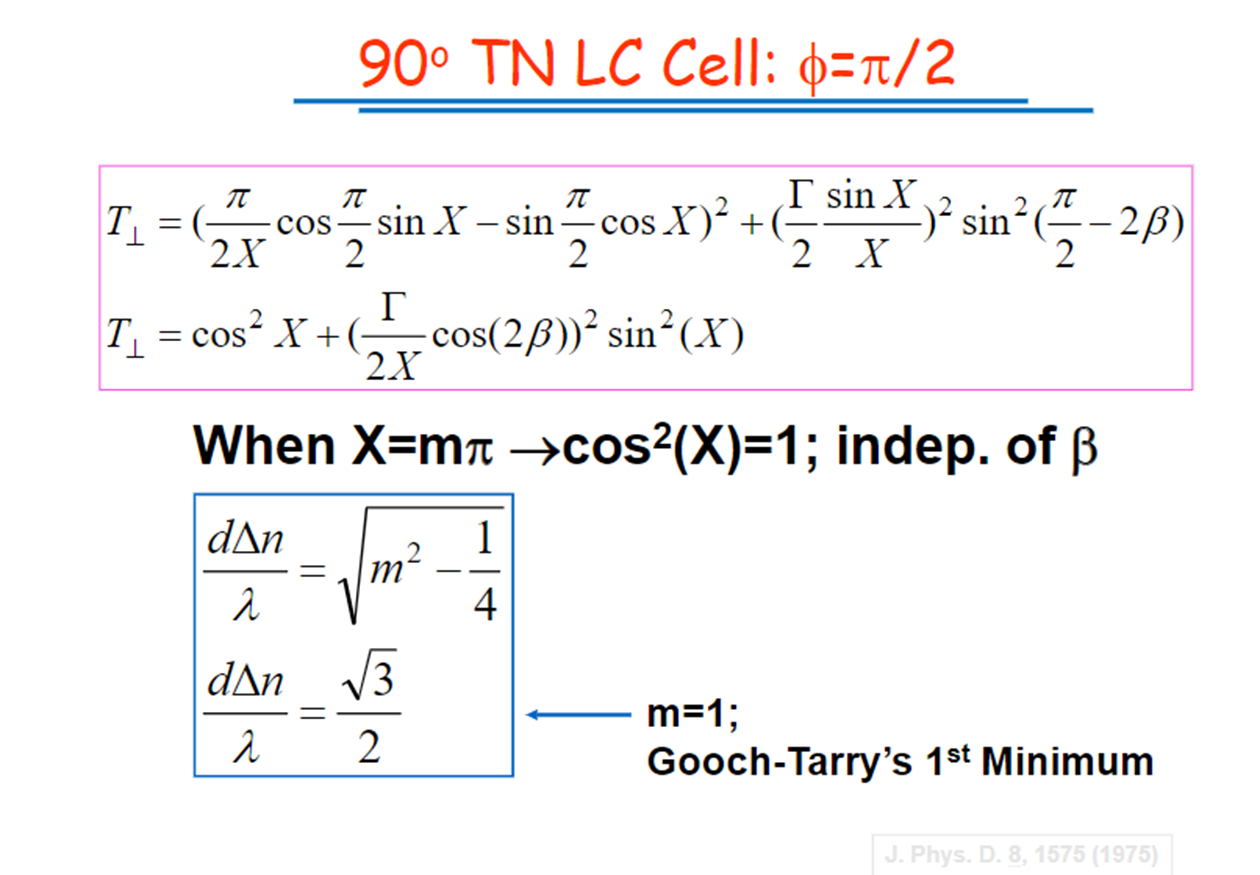 上面這兩張圖為twist nematic liquid crystal 的相關計算原理,這張圖對應的不同波長下,所對應的穿透率。