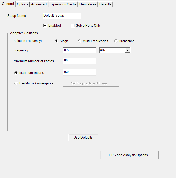 Does anyone know why I don't have the multi-frequencies and broadband options in the analysis setup?