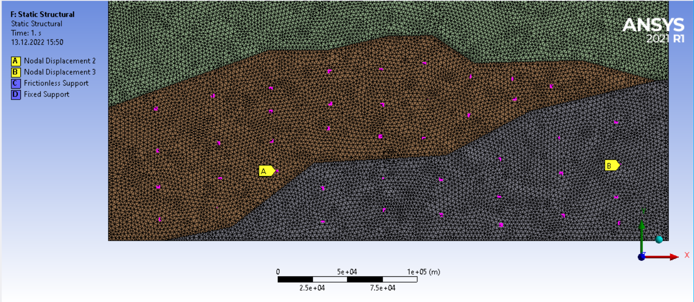 SubscriberI believe the results will be more reliable if you only measure the deformation of the nodes at the GPS coordinates and don’t try to pull the surface using displacements on those nodes.