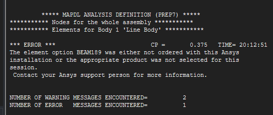 The element option BEAM189 was either not ordered with this Ansys     Â