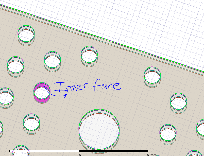 If the vias are not hollow (the case with 1% plating in SiWave), then I am unable to select the inner face/ring of a the via within Q3D. In this case I can only select top and bottom faces, which in reality should be empty. In the second case with 2% plating, I can select the inner face. See attached images.