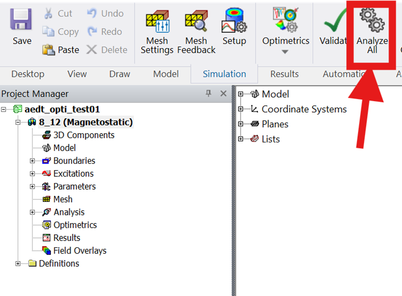 In AEDT, I setup a simple 3D Magnetostatic project and analyzed it: