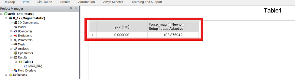 My goal is to extract a scalar force magnitude (1 value) and use it in the optimization objective. As seen from the Maxwell results, this scalar value is 0.103N.