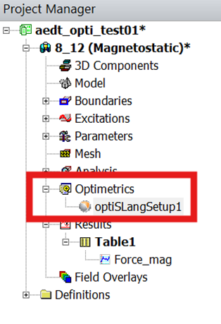 Back in Project Manager, I right-clicked optiSLangSetup1 and selected Create optiSLang Project:
