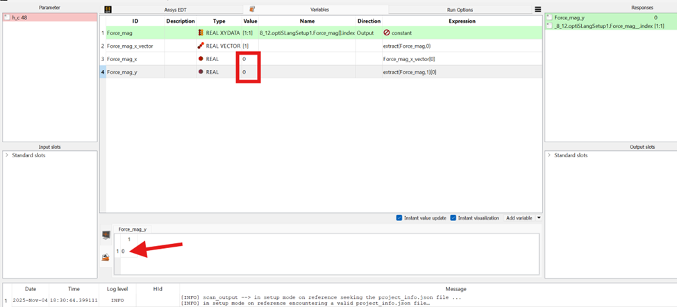 optiSLang & AEDT Optimetrics: response variable has value of 0