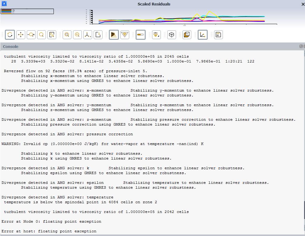 My problem is the pressure in the output region drops to values lower boundary pressure, which is set in the Solution Controls Limits, default is 1 Pa, and the result is 1 Pa, I increase the lower boundary Solution Controls Limits for pressure to 100 000 Pa, in result I have 100 000 Pa, I increase the lower boundary to 400 000 Pa, in result I have 400 000 Pa, the real result should be around 550 000 Pa. I used different versions of the grid such as Tetra, Hexa (CutCell), broke into separate parts of the body and created for each of its own, used a different size for grid’s elements, the result is the same, I was getting lower pressure limit from Solution Controls Limits .Does anyone know how to solve this? Thanks.