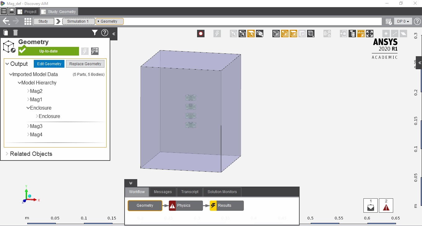 I am an Ansys AIM and Workbench beginner. I started by simulating permanent magnets in Ansys AIM and I studied the forces related to different distances between them by using the Response Surface tool.