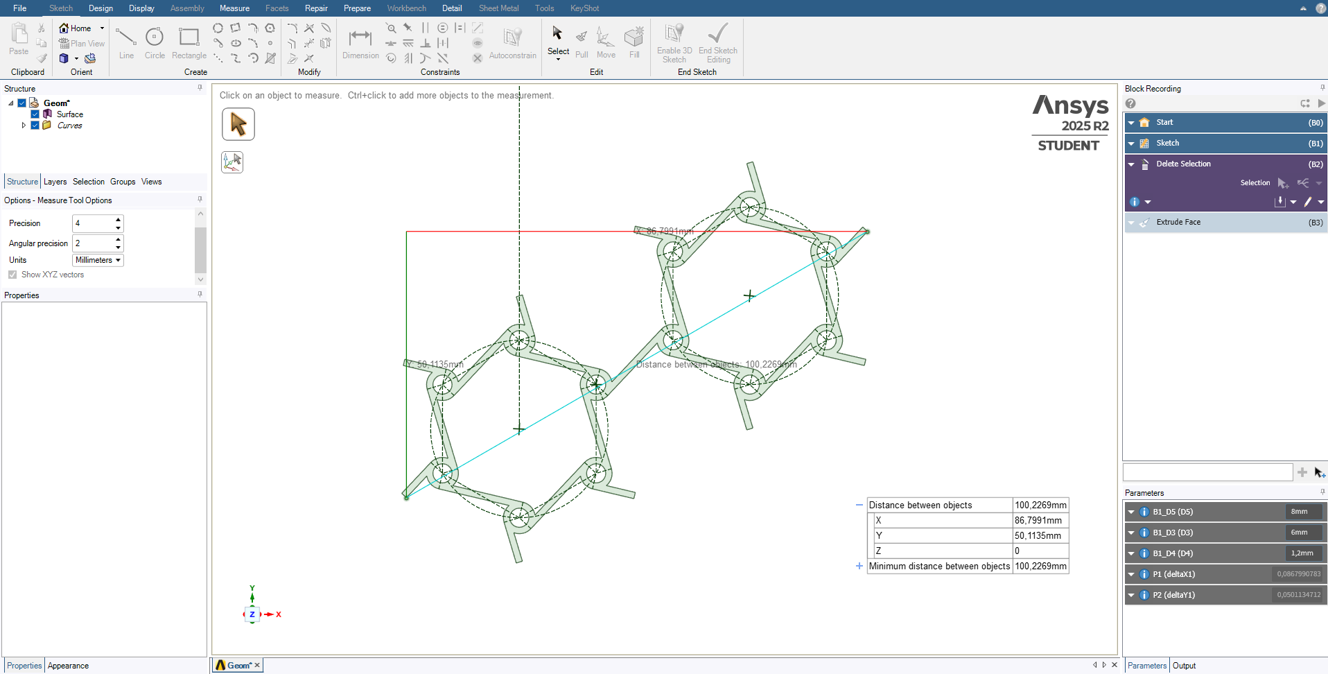 I’m having a problem with a parametric workflow. I’m working on auxetic structures parametrically, and I need the dimension shown in the first image as a numerical value.