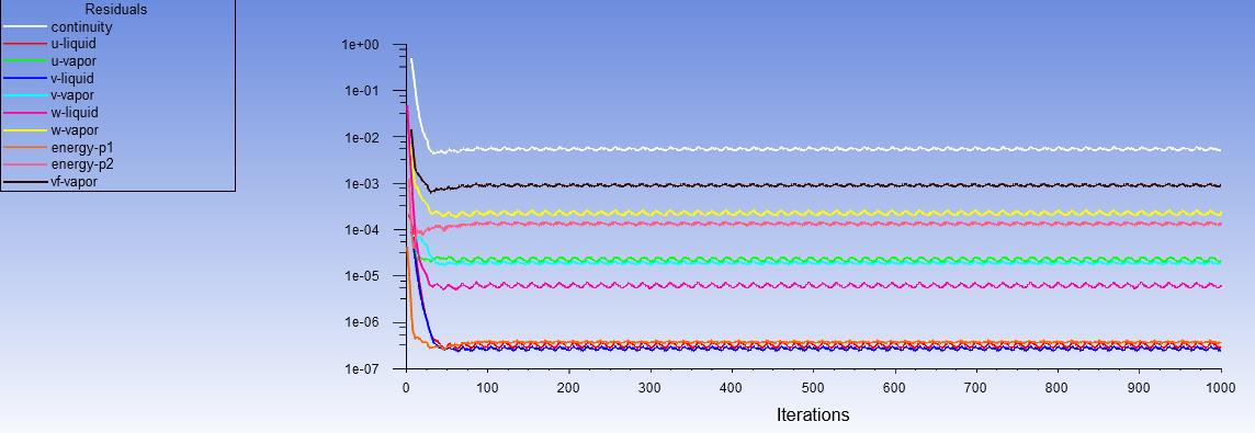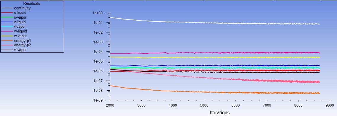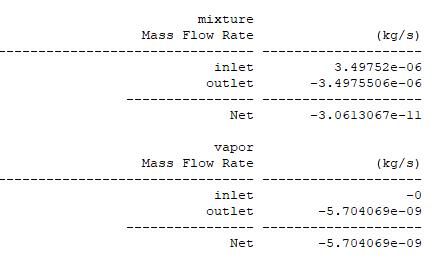Ansys Employee The volume integral of mass transfer rate has to be equal to the mass of the vapor from outlet. If this is true then it is fine. Your case is not realistic and consequenlty convergence by residual will not be amazing. What is your application?