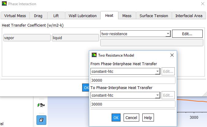 SubscriberI set both From/to Phase-Interaction Heat Transfer to constant instead of ranbze-marshall and zero resistance as default setting. The constant as shown is 30000 W/m^2.k, where I got this value from some paper. what I am really worried about is the dimensions that ansys waiting in these two settings. so is W/m^2.k is right. ?