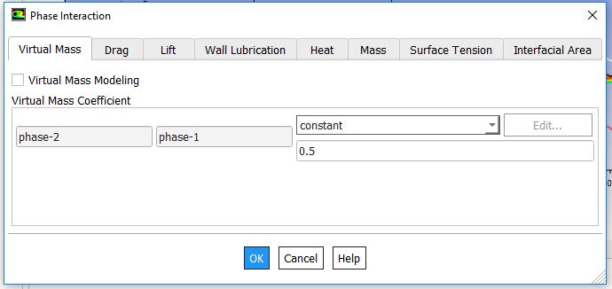 also what was your setting for phase-interactions (drag, lift, etc.) especially the two-resistance model (From Phase-Interphase Heat Transfer and To Phase-Interphase Heat Transfer)?Â