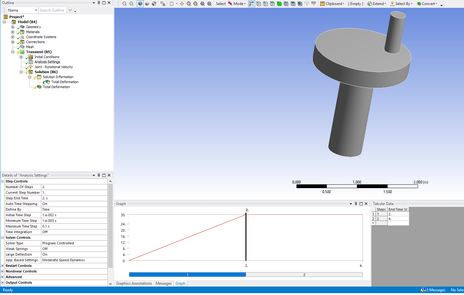 SubscriberHello sir,nnSo the simulation works when i give rotation in terms of degrees. However, i want to give the input in terms of Rotational velocity(rad/s).n Is there way i can do that?.the reason i am asking this because, i have run experiment with disc rotating at 300 rpm for 30 minutes. i want to replicate the same in ansysnnRegardsnSeptember 10, 2020 at 7:24 pmSean Harvey