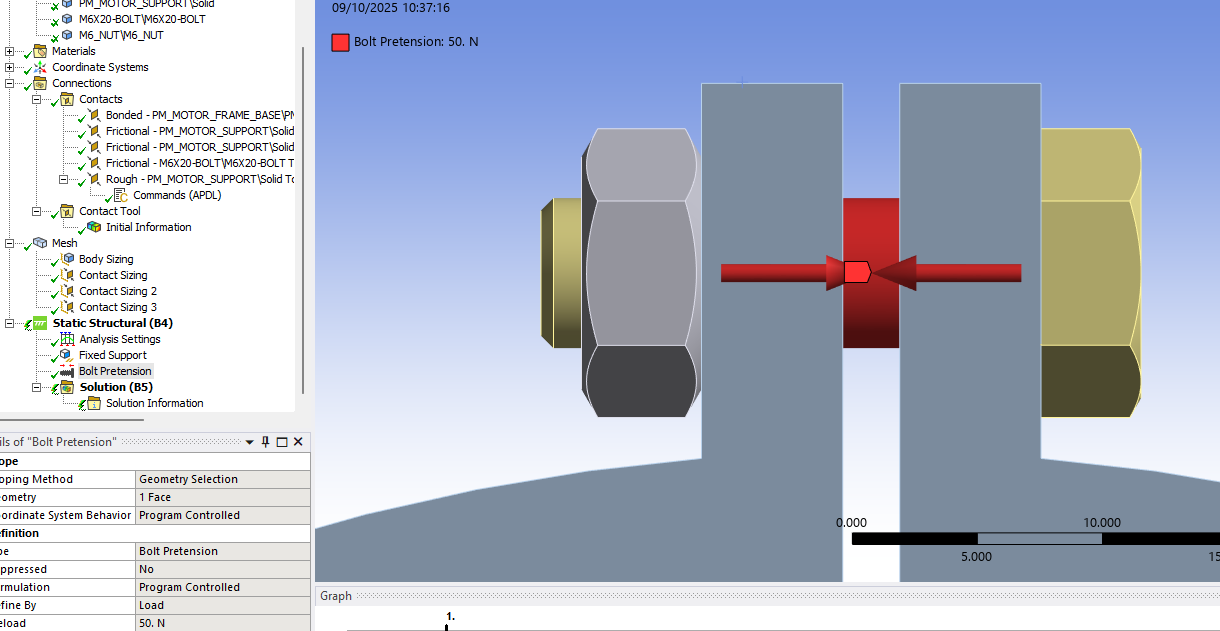 Bolt pretension is set up as shown below with maximum to 868N, 10 steps starts from 50N :