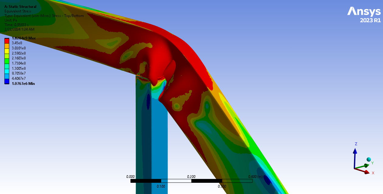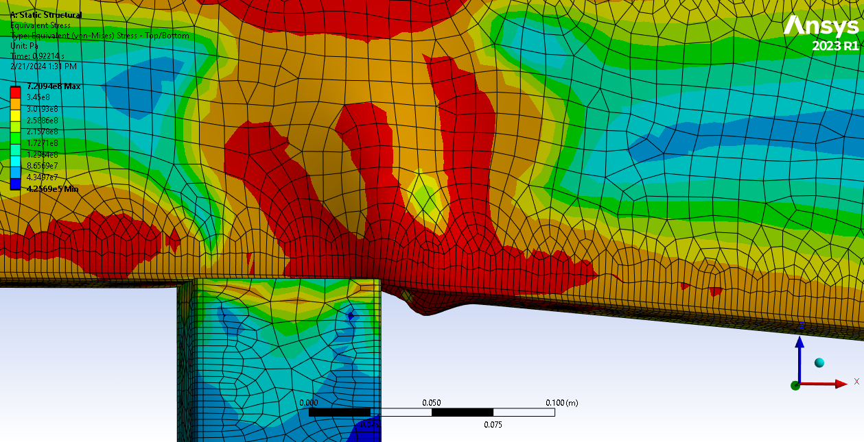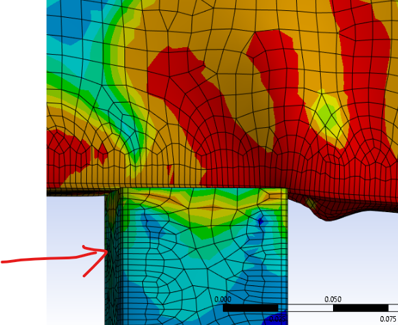 I can set up a contact between the bottom face of the truss and the forward face of the post where they would make contact with one another. Is that what you mean? I tried that. The analysis failed and didn't even give me results I could view. The bottom face of the truss is already being used in a bonded contact with the top of the post. Could that be causing the problem? Do I need to define a seperate face to use for the contact?