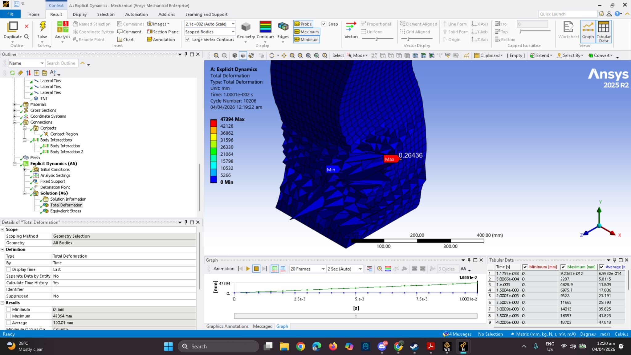 Subscriberhello thank you for response, i will be showing you this instead to make it safe. i have a column here and i have a 0.1x0.1x0.1 cube beside it (i just hide it to see the column deformation) , what i mean to "beside it" is like its attached or stick into it, it symbolize as TNT or the detonation point, the TNT is 1000kg/m^3. so what im confused is why the maximum deflection for the column is just 0.3mm something. just from imagining it, it should atleast destroy the lower part of the column