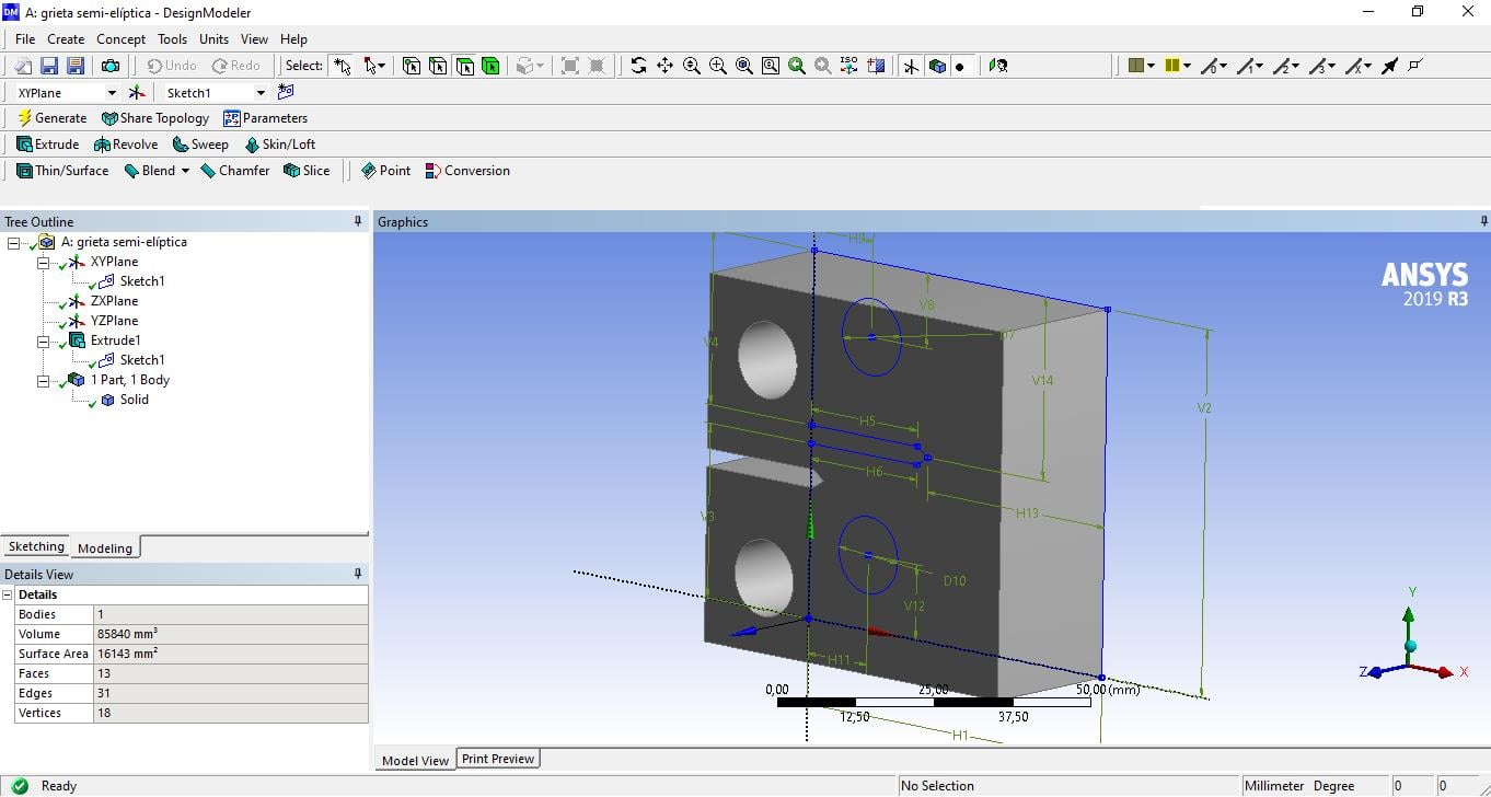 Also, I used DesignModeler to draw the CT specimen and used the tool extrude to give volumen to it. Maybe it is related to the software I used to generate the body, or the way I did? Thanks for your help.