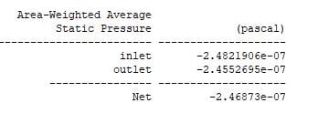 Forum ModeratorHow do the flow results look? Without knowing the scale it's hard to judge but flow through a duct at very low velocity will have a very low dP.