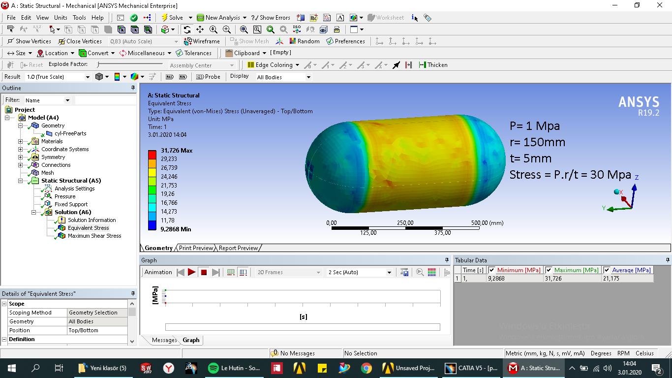 SubscriberHello all, Im going to start to work at a company which deals with pressured vessels and im trying to explore pressured vessel world. I designed a cyclindrical pressured vessel with 5 mm thickness and 150 mm radius and I applied 1 Mpa pressure from inside.This ones mesh element type was linear. According to formula P.r / t = 30 Mpa and I got 31 Mpa result from von mises stress. Then i switched element type to 2nd order and i ran analysis again then I got 60 Mpa result. It was surprise for me and i didnt understand why i got 60 Mpa result ? I need your help to understand this phenomenon, thank you.