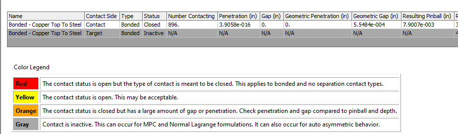 As mentioned above, I modified this gap until I was able to achieve an acceptable gap and penetration value in the initial information via the contact tool: