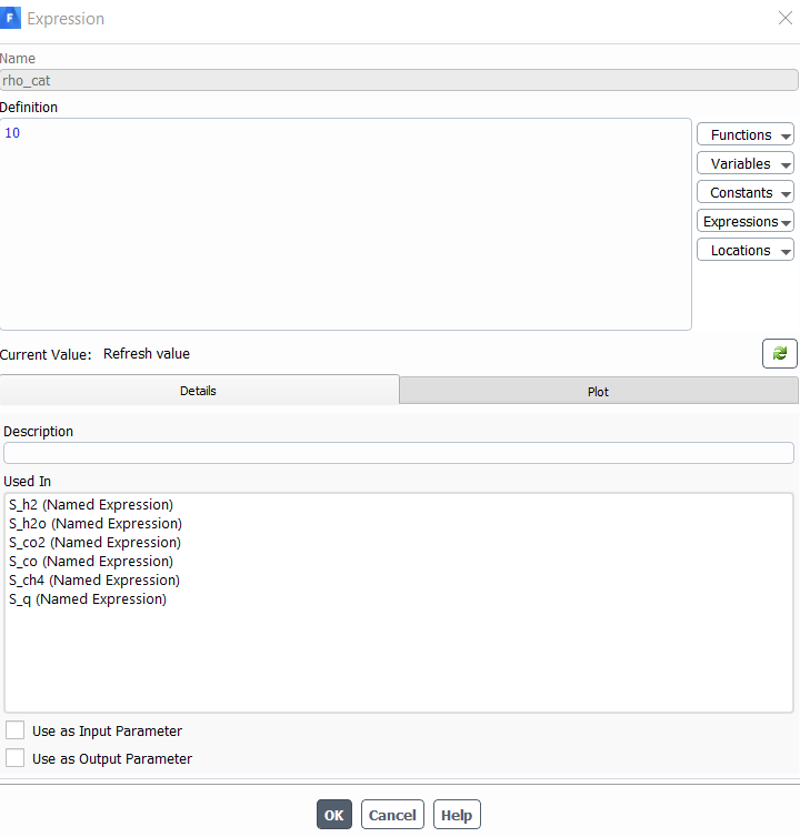 And My Problem ist, wenn I change the "rho_cat" between two calculations, nothng happens to "S_h2". Only wenn I restart the fluent again, the solver seems to notice that the source term is also changed.