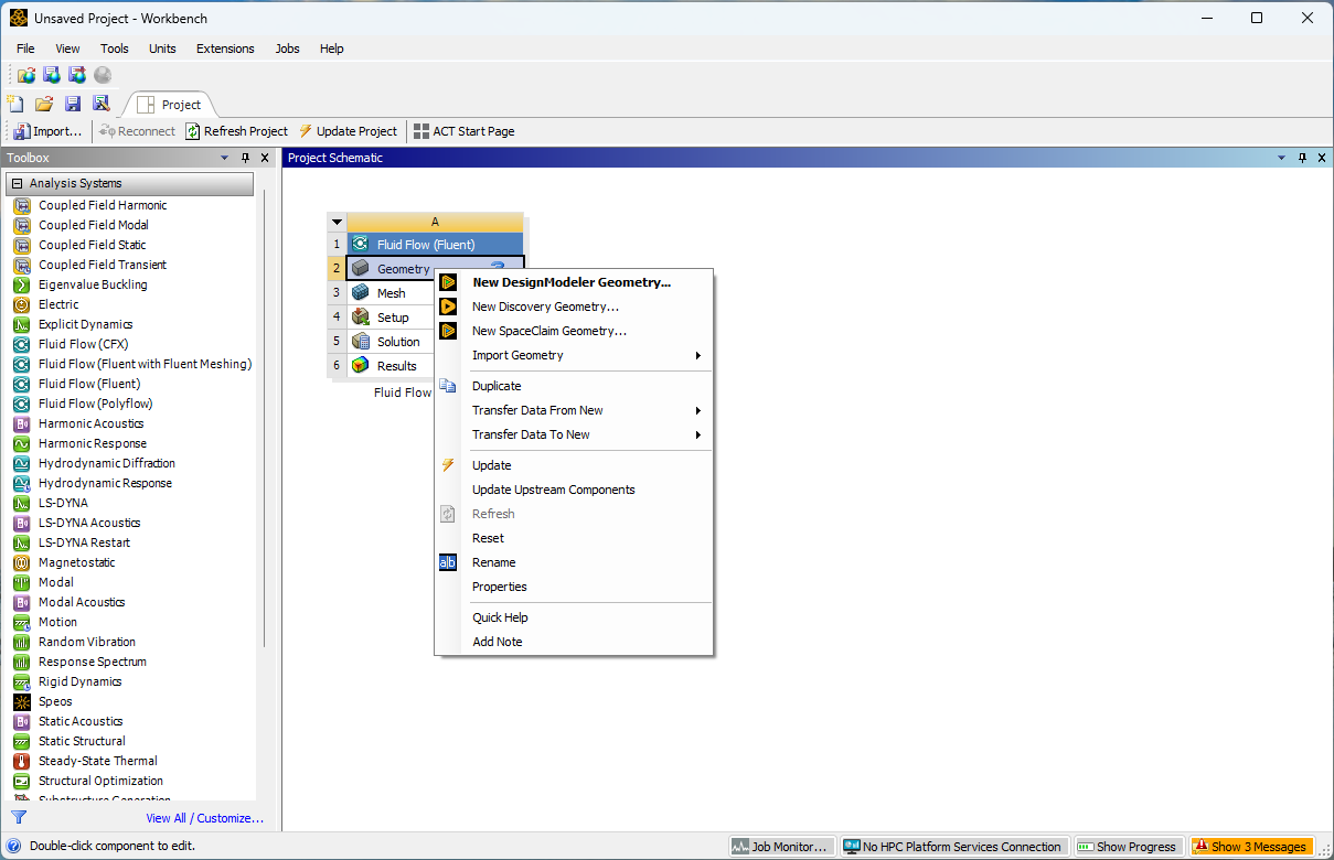 1.When I attempt to open DesignModeler via Workbench -> Fluent -> Geometry, it fails to launch. (Instead, Discovery is okay to run)