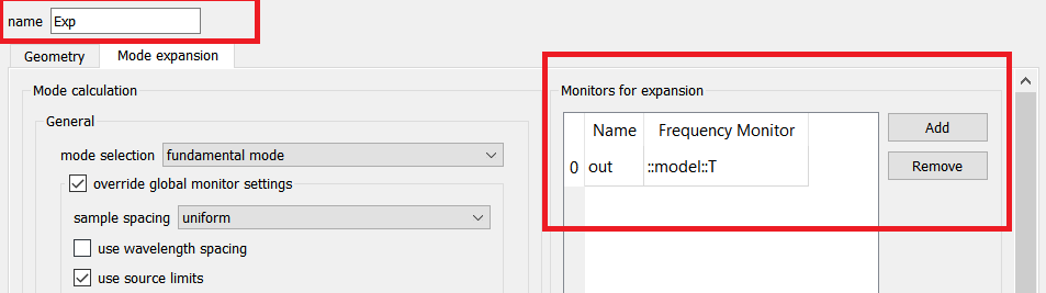 I cannot figure out how to programatically add a frequency monitor to an existing mode expansion monitor. This is particularly problematic when creating the mode expansion monitor using a construction script in model, because then we cannot manually alter the expansion monitor.