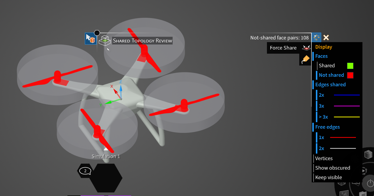 Hi, Iam doing the Quadcopter CFD Course and I have encounter a problem with the share topology part of the course. I follow the video selcting share and then ok, but when I see the review it says not shared,  and it is in red. I did a pre-check and it did't found anything. What Iam doing wrong?