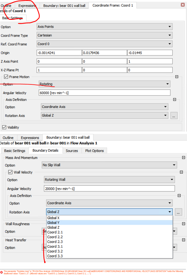 Ansys EmployeeWill the ball belong to the rotating domain? If yes: they should use the same axis of rotation.