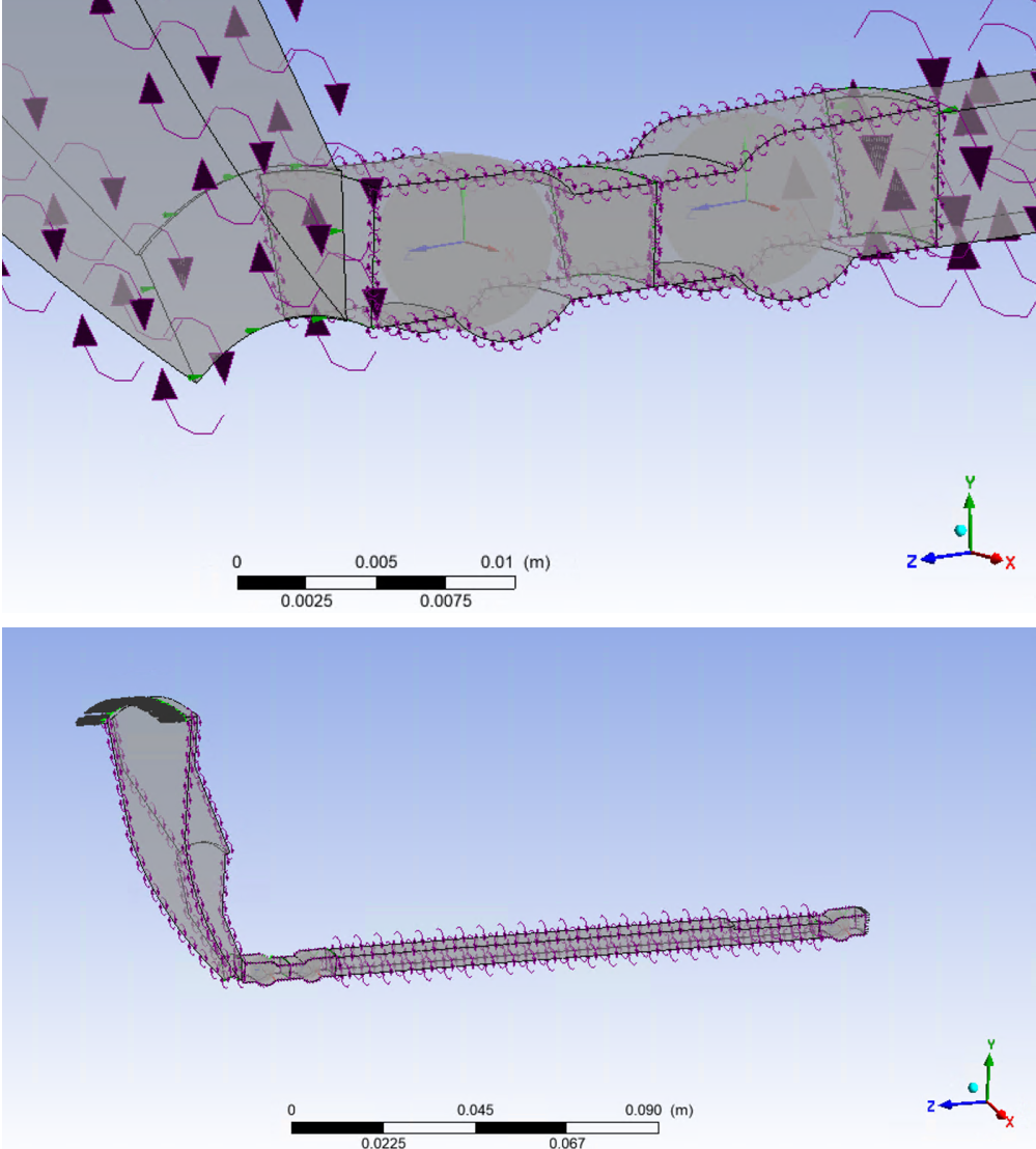 SubscriberHello, everyone! I have got this question about simulating flow in the bearing. I define the speed of revolution in the bearing domain, and I also need to define the speed of rotation of the ball of the bearing. I insert a new coordinate frame, and its origin is set in the center of the ball. I want to set the frame as a rotating frame, but after that, I can't define the wall velocity of the ball by the new rotating frame to define a relative speed. If I set the frame as stationary, I can define the wall velocity of the ball by the new rotating frame, but the frame is stationary. And here is my question: if I set the new frame as stationary, will the revolution speed of the bearing domain be added to the ball for I want to define a relative speed of the ball; otherwise, if I set the new frame as a rotating one, how could I define the wall velocity? Thank you very much!