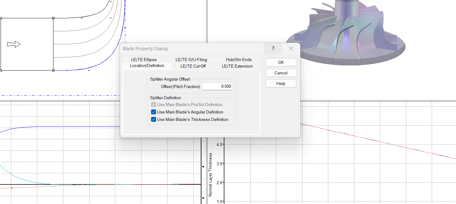 Regarding making the splitter height less than that of the full blade, this is not a common design approach in turbomachinery so this capability is not offered in BladeGen. If you wish to have the splitter blade at a different height than the full blade, here is one approach: