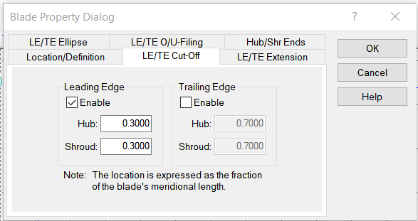 For now I can modify beta angle of leading edge on shroud and hub and beta angle of trailing edge.