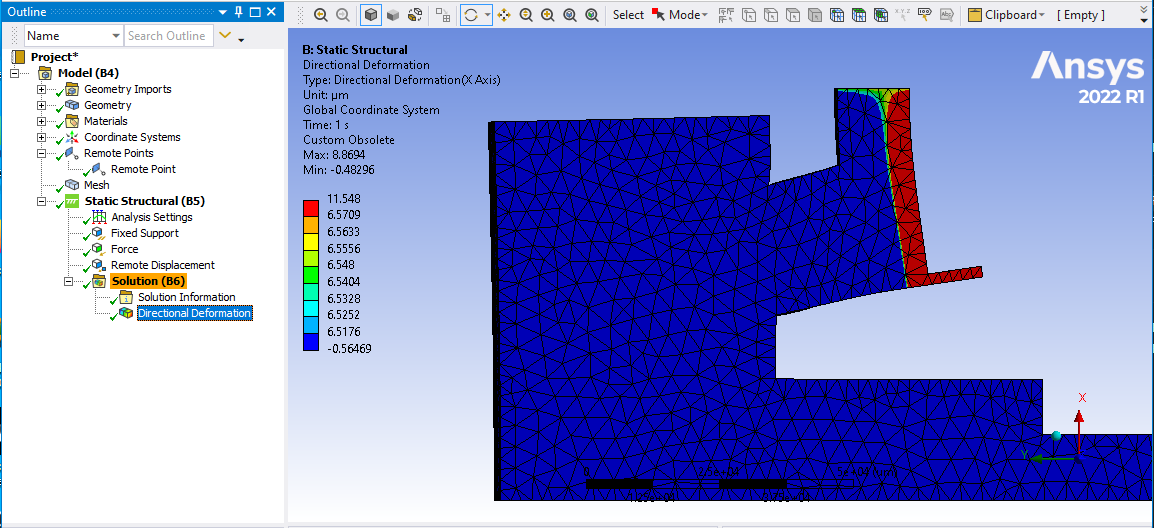 Below is a force applied to the top of the small area without a Remote Displacement.