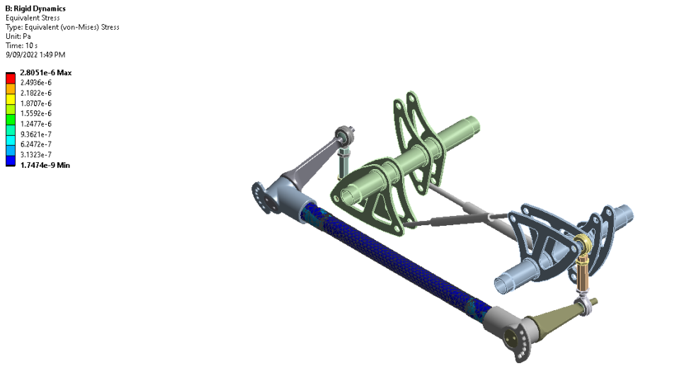 This resulted in equivalent stress being insanely low and playthrough shows the parts connected to the part not moving at all.