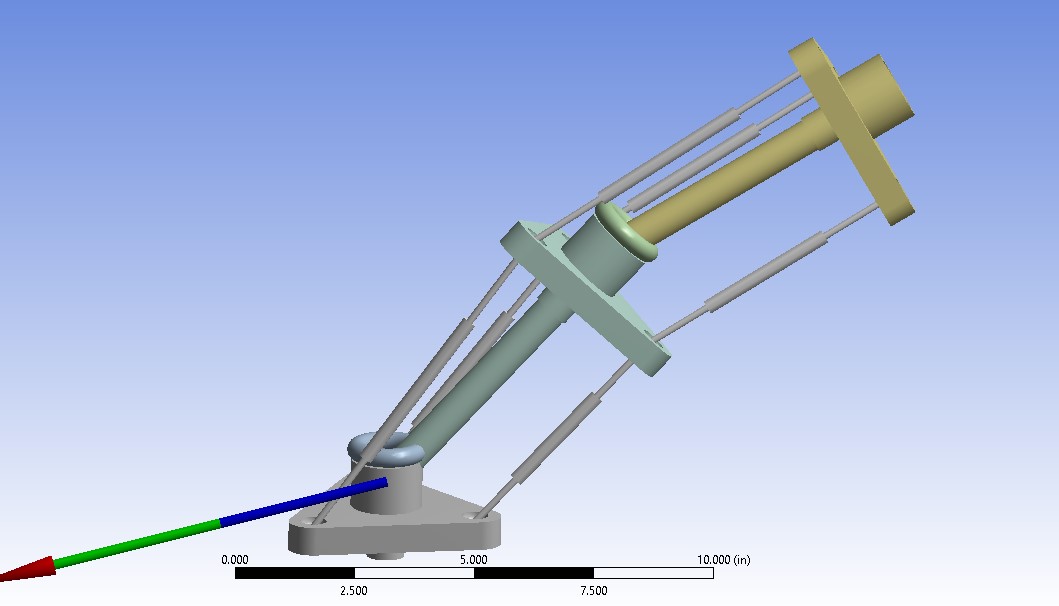 - I am using a Universal joint (like you had suggested me last time). With the spherical joint I was getting a Y-rotation which was undesirable. I did not use contacts to replace the spherical joints. Using contacts always results in ANSYS throwing an error that it couldn't solve the problem completely. I have a feeling that returning back to a spherical joint behavior, the Y-rotation will return. Then, I would have to use some torsional springs to prevent it.