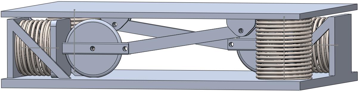 The general principal is that the assembly has 4 springs with magnets fixed at either end and when the springs are compressed due to a force applied the magnets fixed at either end repel each other.Â